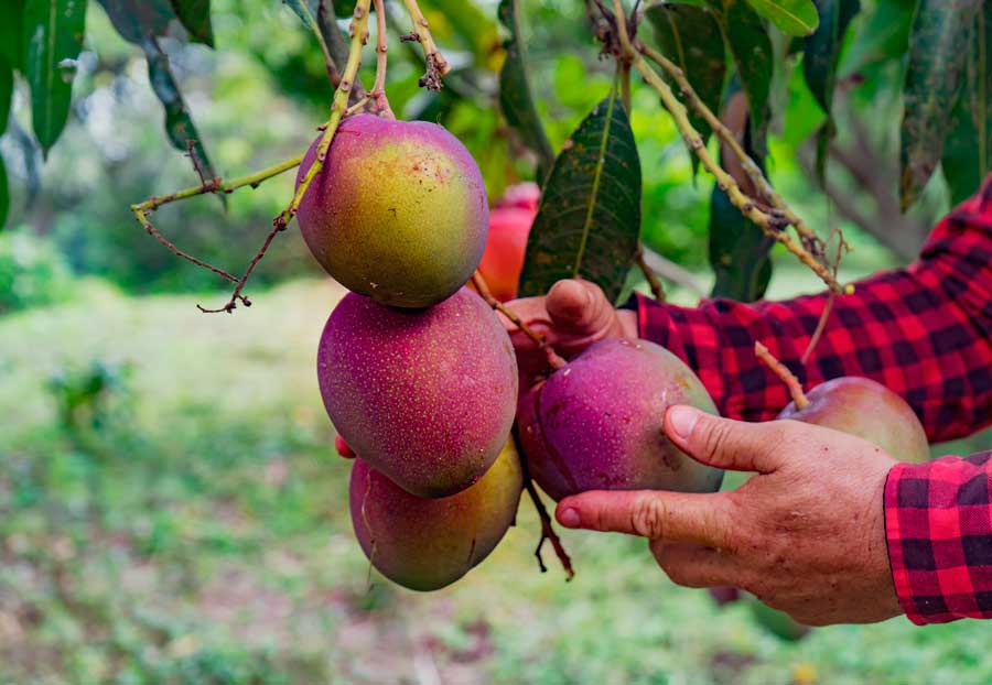 DESCRIPCION Mangoes of the Tommy Atkins varieties, harvested from September – October to November – December, with external coloring typical of the variety, healthy, selected, hydrothermal treatment, with soft flesh of an intense yellow color with an exquisite flavor.